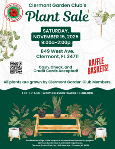 The members of the Clermont Garden Club are hosting their annual Plant Sale on Saturday, November 15, 2025 from 9am-2pm at the club located at 849 West Ave, Clermont, FL 34711.