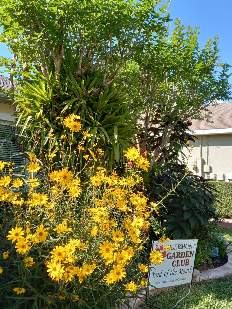The Clermont Garden Club has chosen the yard of Tina Worrell at 1004 Everest Street in the Summit Greens subdivision. Tina has been a member of the Clermont Garden Club for over 20 years and brings her vast knowledge of plants to our monthly meetings as well as clippings from her yard for us to grow in our yards.